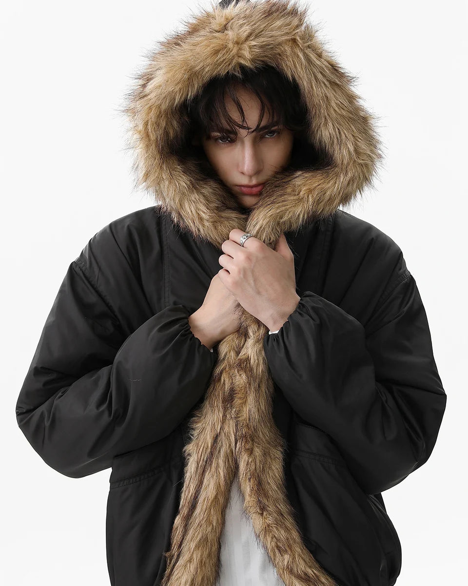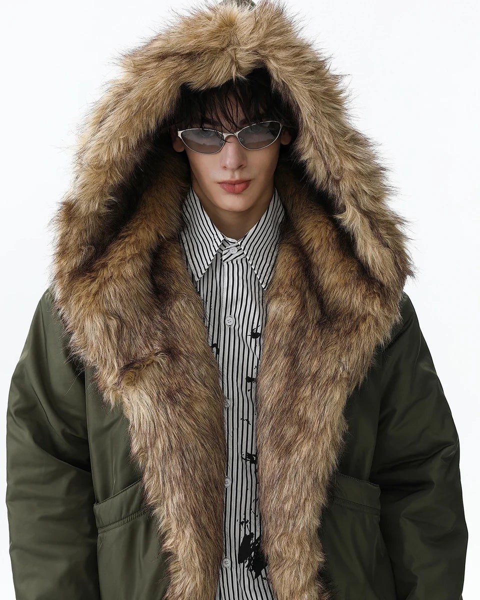 Faux Fur Hooded Green Padded Jacket | INFLATION Streetwear